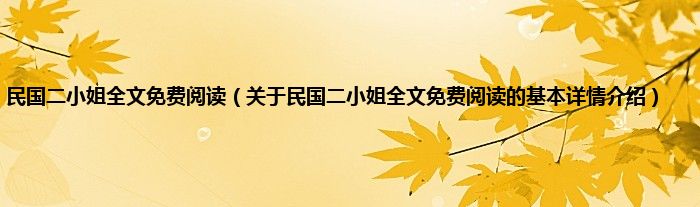 本文关于民国二小姐全文免费阅读的基本详情介绍就讲解完毕,希望对大家有所帮助。