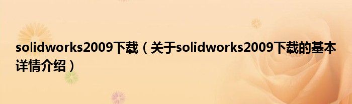 本文关于solidworks2009下载的基本详情介绍就讲解完毕,希望对大家有所帮助。