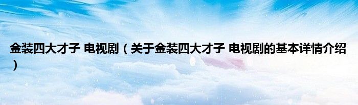 本文关于金装四大才子 电视剧的基本详情介绍就讲解完毕,希望对大家有所帮助。