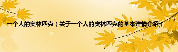 大家好我是小蝌蚪,一个人的奥林匹克,关于一个人的奥林匹克的基本详情介绍很多人还不知道,那么现在让我们一起来看看吧!