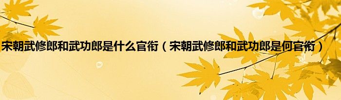 欢迎观看本篇文章,小升来为大家解答以上问题。宋朝武修郎和武功郎是什么官衔,宋朝武修郎和武功郎是何官衔很多人还不知道,现在让我们一起来看看吧!