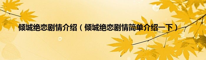 欢迎观看本篇文章,小升来为大家解答以上问题。倾城绝恋剧情介绍,倾城绝恋剧情简单介绍一下很多人还不知道,现在让我们一起来看看吧!