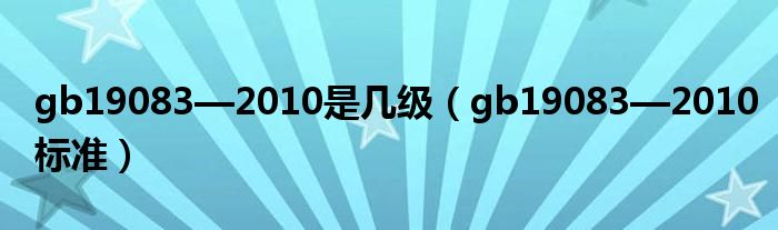 大家好,综合小编来为大家讲解下gb19083—2010是几级,gb19083—2010标准这个很多人还不知道,现在让我们一起来看看吧!