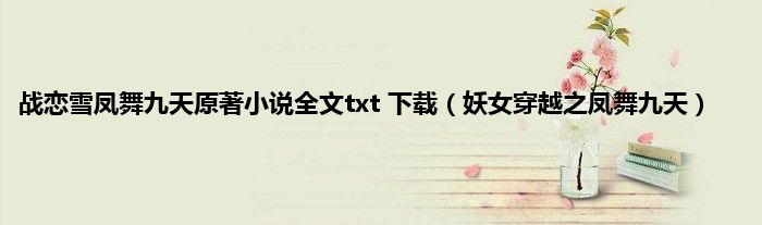 大家好,小问来为大家解答以上问题。战恋雪凤舞九天原著小说全文txt 下载,妖女穿越之凤舞九天这个很多人还不知道,现在让我们一起来看看吧!