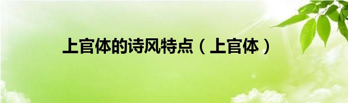 以上就是【上官体的诗风特点,上官体】相关内容。