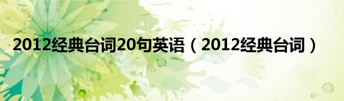 大家好,小问来为大家解答以上问题。2012经典台词20句英语,2012经典台词这个很多人还不知道,现在让我们一起来看看吧!