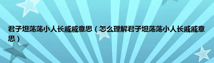 欢迎观看本篇文章,小升来为大家解答以上问题。君子坦荡荡小人长戚戚意思,怎么理解君子坦荡荡小人长戚戚意思很多人还不知道,现在让我们一起来看看吧!