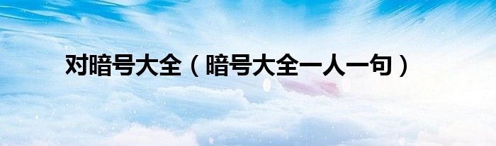 大家好,小问来为大家解答以上问题。对暗号大全,暗号大全一人一句这个很多人还不知道,现在让我们一起来看看吧!