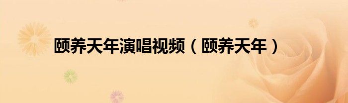 大家好,小问来为大家解答以上问题。颐养天年演唱视频,颐养天年这个很多人还不知道,现在让我们一起来看看吧!