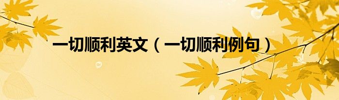 欢迎观看本篇文章,小升来为大家解答以上问题。一切顺利英文,一切顺利例句很多人还不知道,现在让我们一起来看看吧!