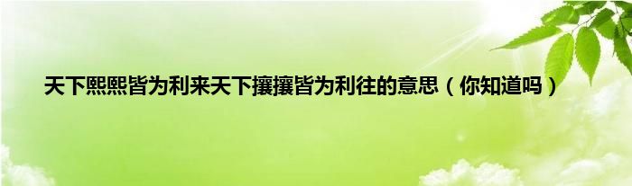 欢迎观看本篇文章,小升来为大家解答以上问题。天下熙熙皆为利来天下攘攘皆为利往的意思,你知道吗很多人还不知道,现在让我们一起来看看吧!