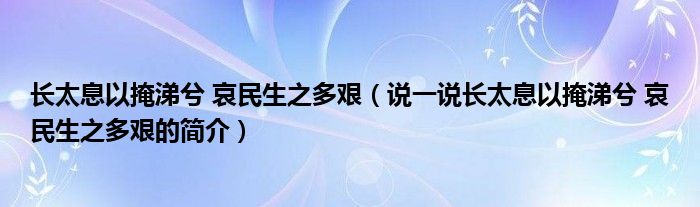 夏弥来为大家解答以下的问题,长太息以掩涕兮 哀民生之多艰,说一说长太息以掩涕兮 哀民生之多艰的简介,现在让我们一起来看看吧!