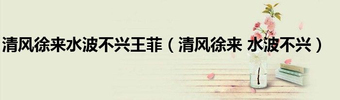 关于清风徐来水波不兴王菲,清风徐来 水波不兴这个很多人还不知道,今天菲菲来为大家解答以上的问题,现在让我们一起来看看吧!