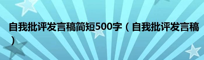 关于自我批评发言稿简短500字,自我批评发言稿这个很多人还不知道,今天菲菲来为大家解答以上的问题,现在让我们一起来看看吧!