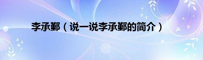 夏弥来为大家解答以下的问题,李承鄞,说一说李承鄞的简介,现在让我们一起来看看吧!
