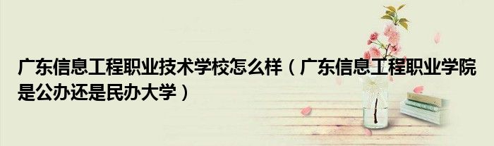关于广东信息工程职业技术学校怎么样,广东信息工程职业学院是公办还是民办大学这个很多人还不知道,今天菲菲来为大家解答以上的问题,现在让我们一起来看看吧!
