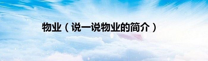 夏弥来为大家解答以下的问题,物业,说一说物业的简介,现在让我们一起来看看吧!