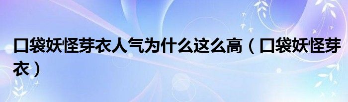 关于口袋妖怪芽衣人气为什么这么高,口袋妖怪芽衣这个很多人还不知道,今天菲菲来为大家解答以上的问题,现在让我们一起来看看吧!