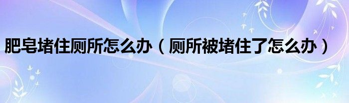 关于肥皂堵住厕所怎么办,厕所被堵住了怎么办这个很多人还不知道,今天菲菲来为大家解答以上的问题,现在让我们一起来看看吧!