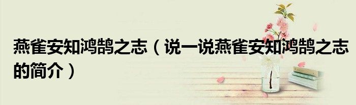 夏弥来为大家解答以下的问题,燕雀安知鸿鹄之志,说一说燕雀安知鸿鹄之志的简介,现在让我们一起来看看吧!