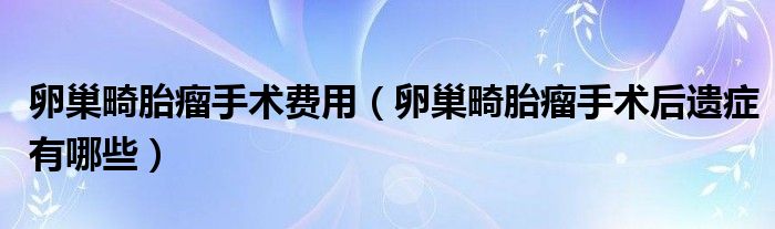 大家好,乐天来为大家解答以下的问题,卵巢畸胎瘤手术费用,卵巢畸胎瘤手术后遗症有哪些很多人还不知道,现在让我们一起来看看吧!