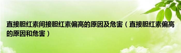 大家好,乐天来为大家解答以下的问题,直接胆红素间接胆红素偏高的原因及危害,直接胆红素偏高的原因和危害很多人还不知道,现在让我们一起来看看吧!