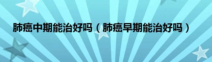 大家好,乐天来为大家解答以下的问题,肺癌中期能治好吗,肺癌早期能治好吗很多人还不知道,现在让我们一起来看看吧!