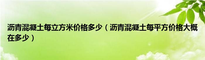 关于沥青混凝土每立方米价格多少,沥青混凝土每平方价格大概在多少这个很多人还不知道,今天菲菲来为大家解答以上的问题,现在让我们一起来看看吧!