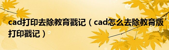 关于cad打印去除教育戳记,cad怎么去除教育版打印戳记这个很多人还不知道,今天菲菲来为大家解答以上的问题,现在让我们一起来看看吧!