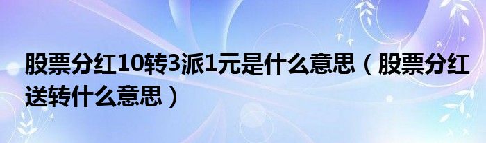 关于股票分红10转3派1元是什么意思,股票分红送转什么意思这个很多人还不知道,今天菲菲来为大家解答以上的问题,现在让我们一起来看看吧!
