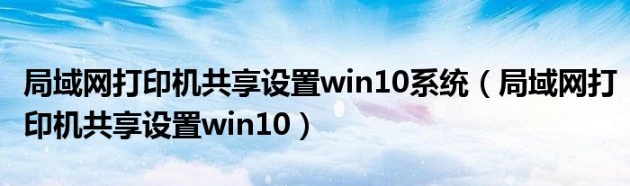关于局域网打印机共享设置win10系统,局域网打印机共享设置win10这个很多人还不知道,今天菲菲来为大家解答以上的问题,现在让我们一起来看看吧!