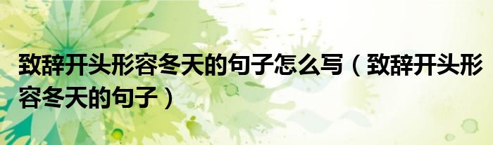 关于致辞开头形容冬天的句子怎么写,致辞开头形容冬天的句子这个很多人还不知道,今天菲菲来为大家解答以上的问题,现在让我们一起来看看吧!