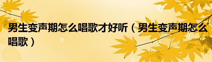 关于男生变声期怎么唱歌才好听,男生变声期怎么唱歌这个很多人还不知道,今天菲菲来为大家解答以上的问题,现在让我们一起来看看吧!
