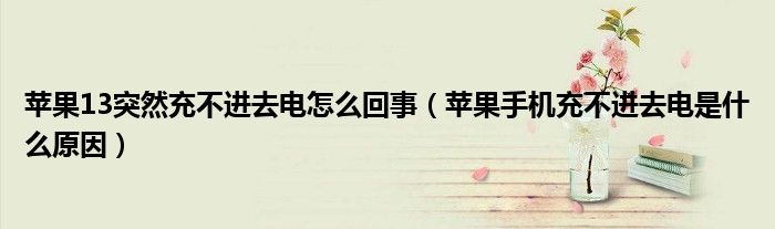 关于苹果13突然充不进去电怎么回事,苹果手机充不进去电是什么原因这个很多人还不知道,今天菲菲来为大家解答以上的问题,现在让我们一起来看看吧!