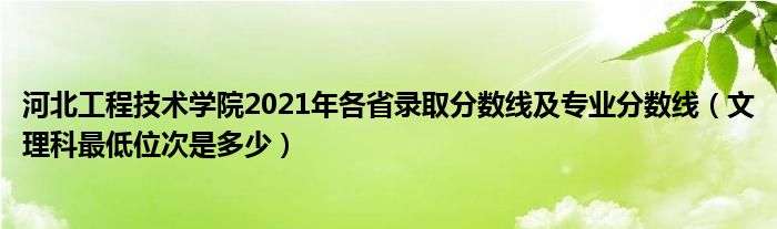 大家好,乐儿来为大家解答以下问题,河北工程技术学院2021年各省录取分数线及专业分数线,文理科最低位次是多少很多人还不知道,现在让我们一起来看看吧!
