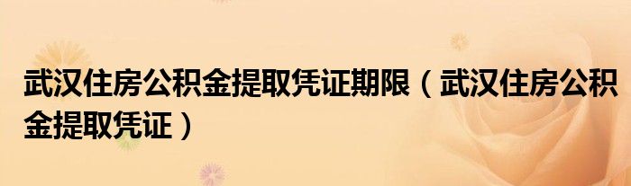 关于武汉住房公积金提取凭证期限,武汉住房公积金提取凭证这个很多人还不知道,今天菲菲来为大家解答以上的问题,现在让我们一起来看看吧!