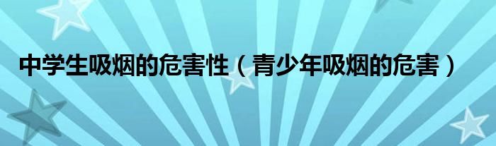 关于中学生吸烟的危害性,青少年吸烟的危害这个很多人还不知道,今天菲菲来为大家解答以上的问题,现在让我们一起来看看吧!