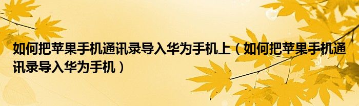 关于如何把苹果手机通讯录导入华为手机上,如何把苹果手机通讯录导入华为手机这个很多人还不知道,今天菲菲来为大家解答以上的问题,现在让我们一起来看看吧!