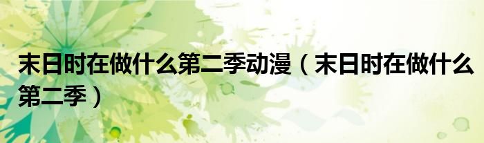 关于末日时在做什么第二季动漫,末日时在做什么第二季这个很多人还不知道,今天菲菲来为大家解答以上的问题,现在让我们一起来看看吧!