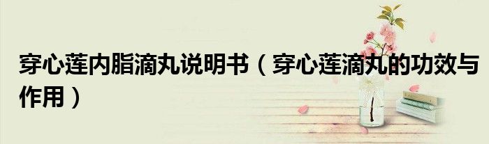 大家好,乐天来为大家解答以下的问题,穿心莲内脂滴丸说明书,穿心莲滴丸的功效与作用很多人还不知道,现在让我们一起来看看吧!