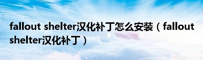 关于fallout shelter汉化补丁怎么安装,fallout shelter汉化补丁这个很多人还不知道,今天菲菲来为大家解答以上的问题,现在让我们一起来看看吧!