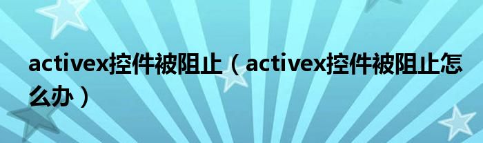 关于activex控件被阻止,activex控件被阻止怎么办这个很多人还不知道,今天菲菲来为大家解答以上的问题,现在让我们一起来看看吧!
