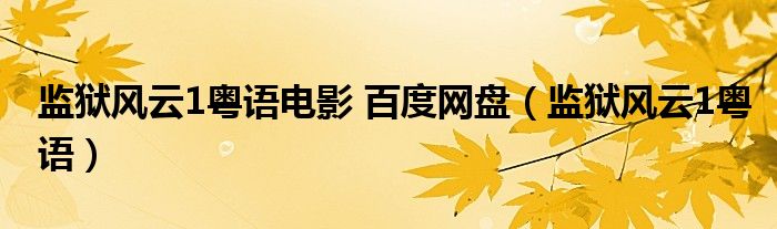 关于监狱风云1粤语电影 百度网盘,监狱风云1粤语这个很多人还不知道,今天菲菲来为大家解答以上的问题,现在让我们一起来看看吧!