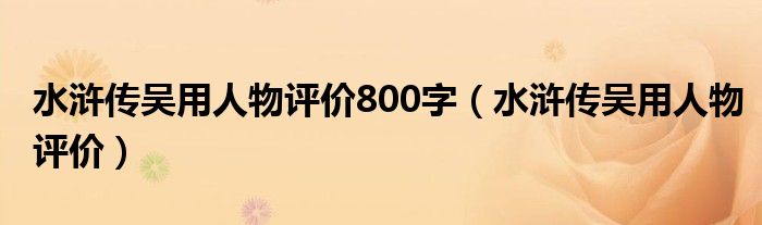 关于水浒传吴用人物评价800字,水浒传吴用人物评价这个很多人还不知道,今天菲菲来为大家解答以上的问题,现在让我们一起来看看吧!