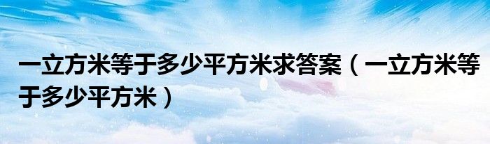 关于一立方米等于多少平方米求答案,一立方米等于多少平方米这个很多人还不知道,今天菲菲来为大家解答以上的问题,现在让我们一起来看看吧!
