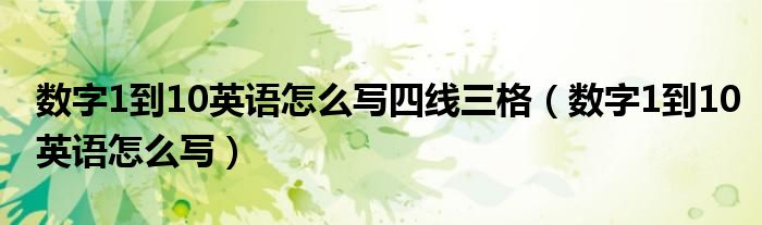 关于数字1到10英语怎么写四线三格,数字1到10英语怎么写这个很多人还不知道,今天菲菲来为大家解答以上的问题,现在让我们一起来看看吧!