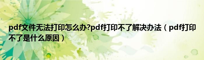 关于pdf文件无法打印怎么办?pdf打印不了解决办法,pdf打印不了是什么原因这个很多人还不知道,今天菲菲来为大家解答以上的问题,现在让我们一起来看看吧!