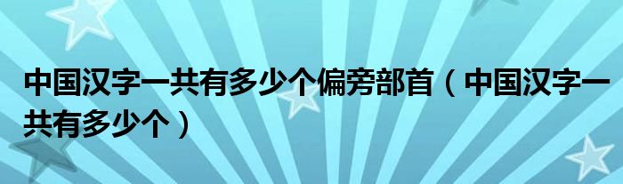 关于中国汉字一共有多少个偏旁部首,中国汉字一共有多少个这个很多人还不知道,今天菲菲来为大家解答以上的问题,现在让我们一起来看看吧!