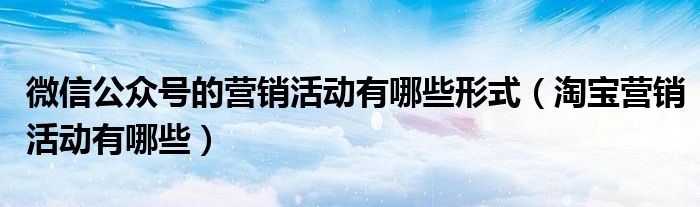 关于微信公众号的营销活动有哪些形式,淘宝营销活动有哪些这个很多人还不知道,今天菲菲来为大家解答以上的问题,现在让我们一起来看看吧!