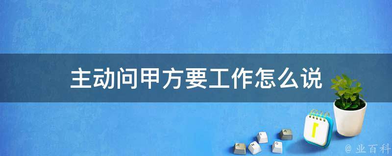 主动问甲方要工作可以说:您好!我现在想要应聘,希望能够在贵公司工作;我打算在这个地方好好工作,希望领导能够支持我,我不会辜负您的希望;很开心能参加该职位的竞聘,我觉得这个职位比较适合我,希望各位领导考虑一下我。